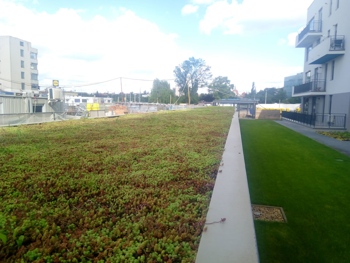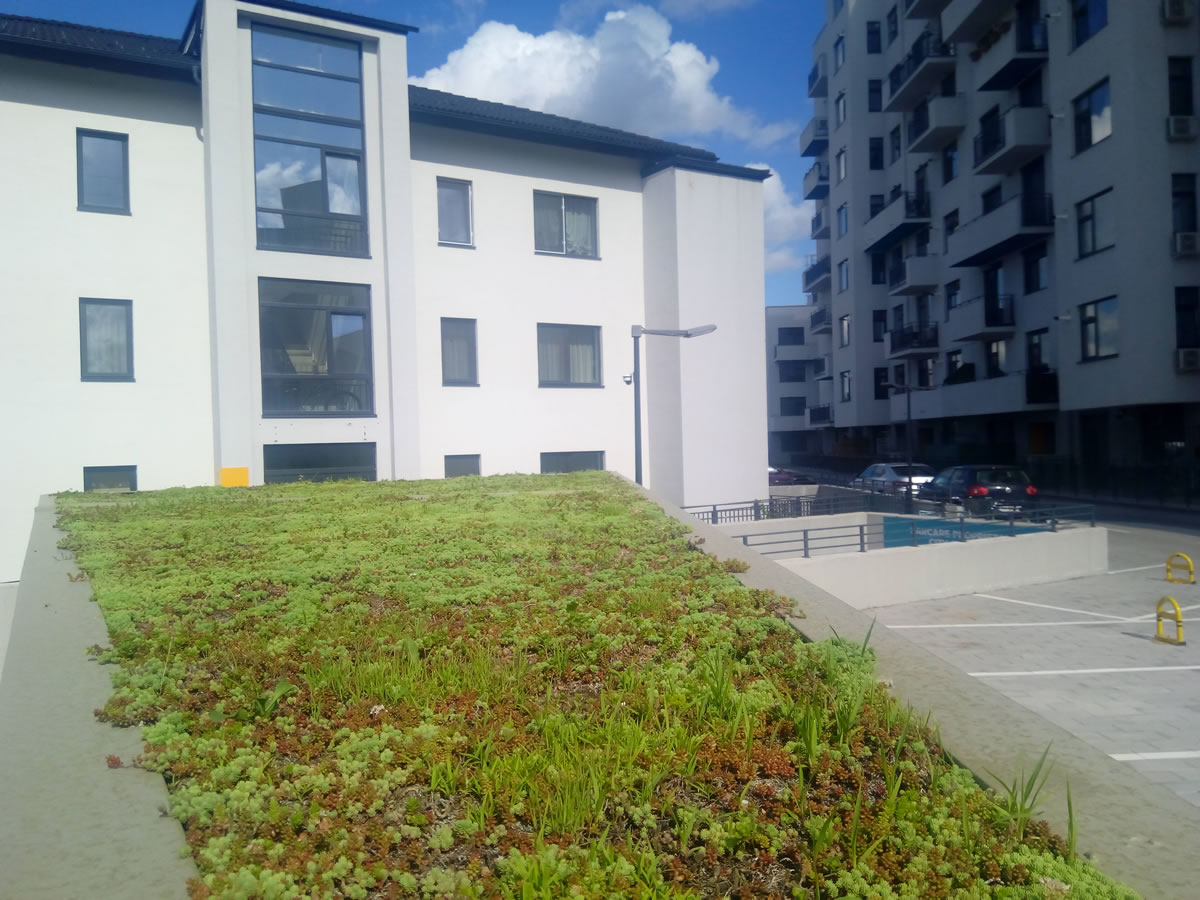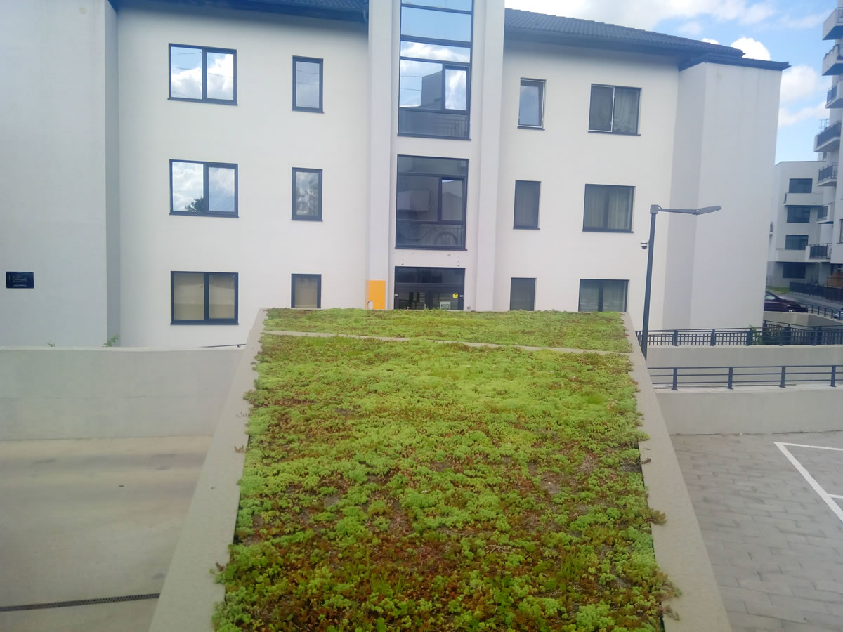 References Residential City of Mara after 1 year 1 min read 0 24 One year after installation, these green roofs installed at a residential complex in Timișoara have visibly stabilized, forming a uniform sedum carpet that completely covers the surface. The vegetation has thickened, and the shades of green and red indicate that the plants have adapted well to urban conditions. In contrast to the surrounding buildings and structures, the green roof brings a natural touch, helping to reduce heat and enhance the aesthetic of the space. Although still young, the plantings show maturity and resilience, demonstrating that the project fulfills its ecological and aesthetic purpose. Every green roof installation we create offers the best cost/efficiency/safety ratio in operation, providing green terrace system solutions specifically adapted to your project. We are at your disposal with designs, system solutions, green roof estimates, and professional consultancy.