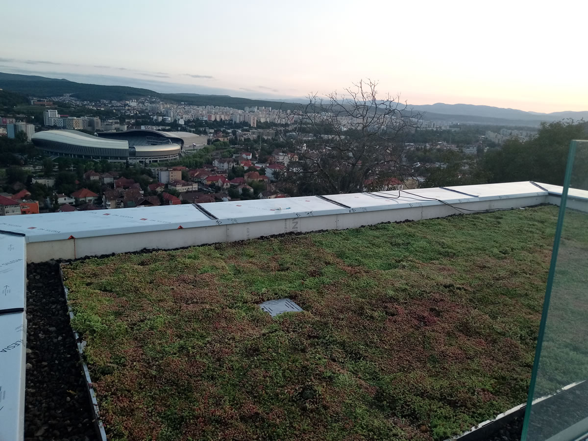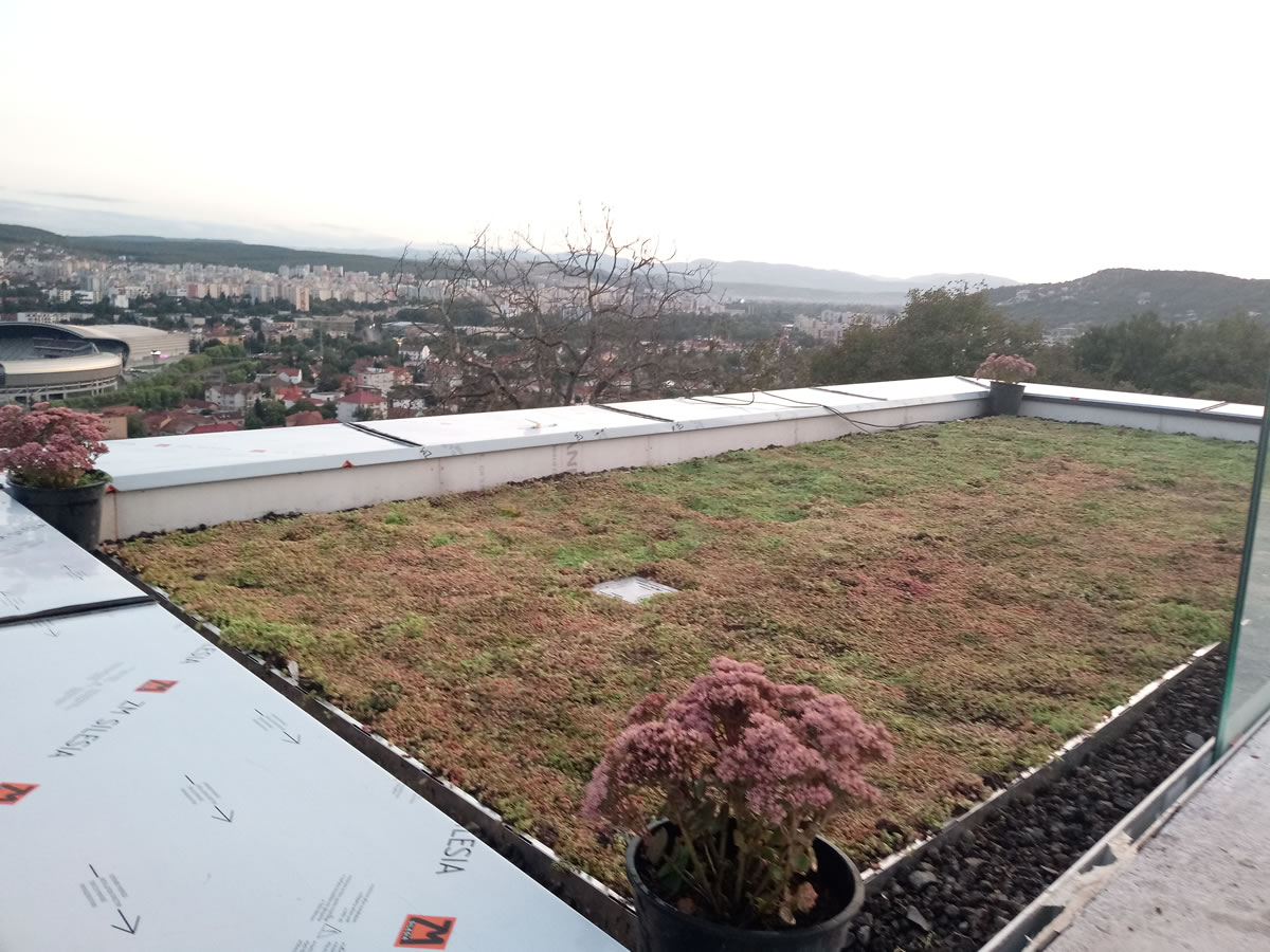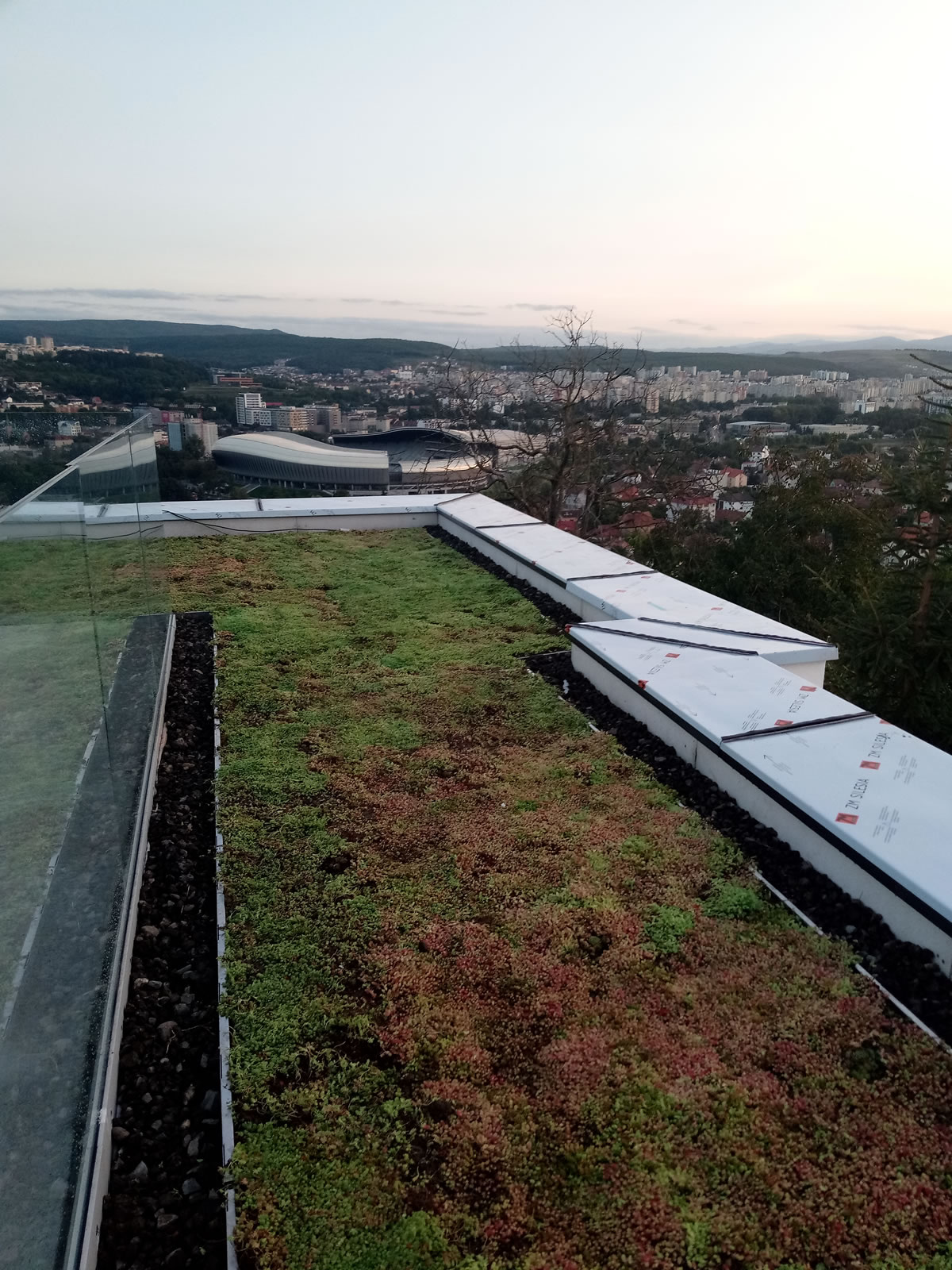 References Residential Extensive green roof on a residential building in Cluj-Napoca 1 min read 0 4 The extensive roof with succulent vegetation blends harmoniously into the landscape, enhancing the urban panorama with a natural and vibrant layer. This type of roof requires minimal maintenance but provides major benefits for insulation and stormwater management. Additionally, it adds a modern and sustainable aesthetic element to any building. In Cluj-Napoca’s luxury residential area, investing in this low-maintenance green terrace increases the building’s value by several times the cost of its implementation. Every green roof project we carry out offers the best cost/efficiency/safety ratio, providing green terrace system solutions tailored specifically to your project. We are at your disposal for projects, system solutions, green roof estimates, and specialized consultancy.